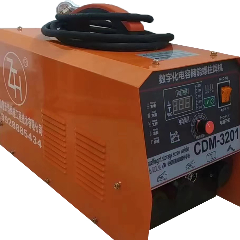 儲能式螺柱焊機可將螺柱、內(nèi)螺紋螺柱、銷釘?shù)阮愃频脑赣诮饘俟ぜ稀T诤附舆^程中,通過元件尖端放電使儲能電容放電,放電時間0.001-0.003秒,不需要氣體或陶瓷環(huán)保護,熔深約0.1MM。